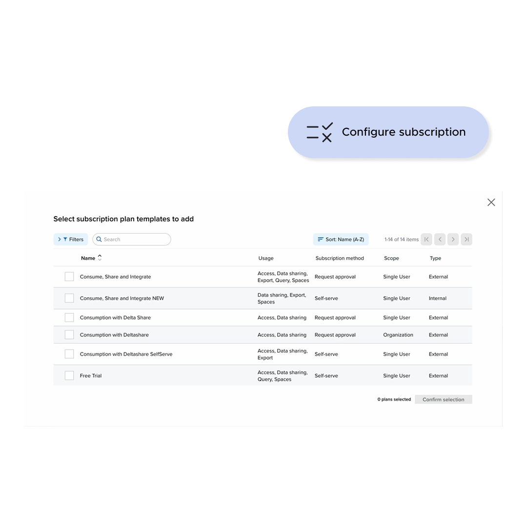 A white-labelled interface where external parties can discover available datasets, request access, and manage their delivery preferences — within parameters you define. Designed for regulators, market participants, auditors, and partners, not just technical users.